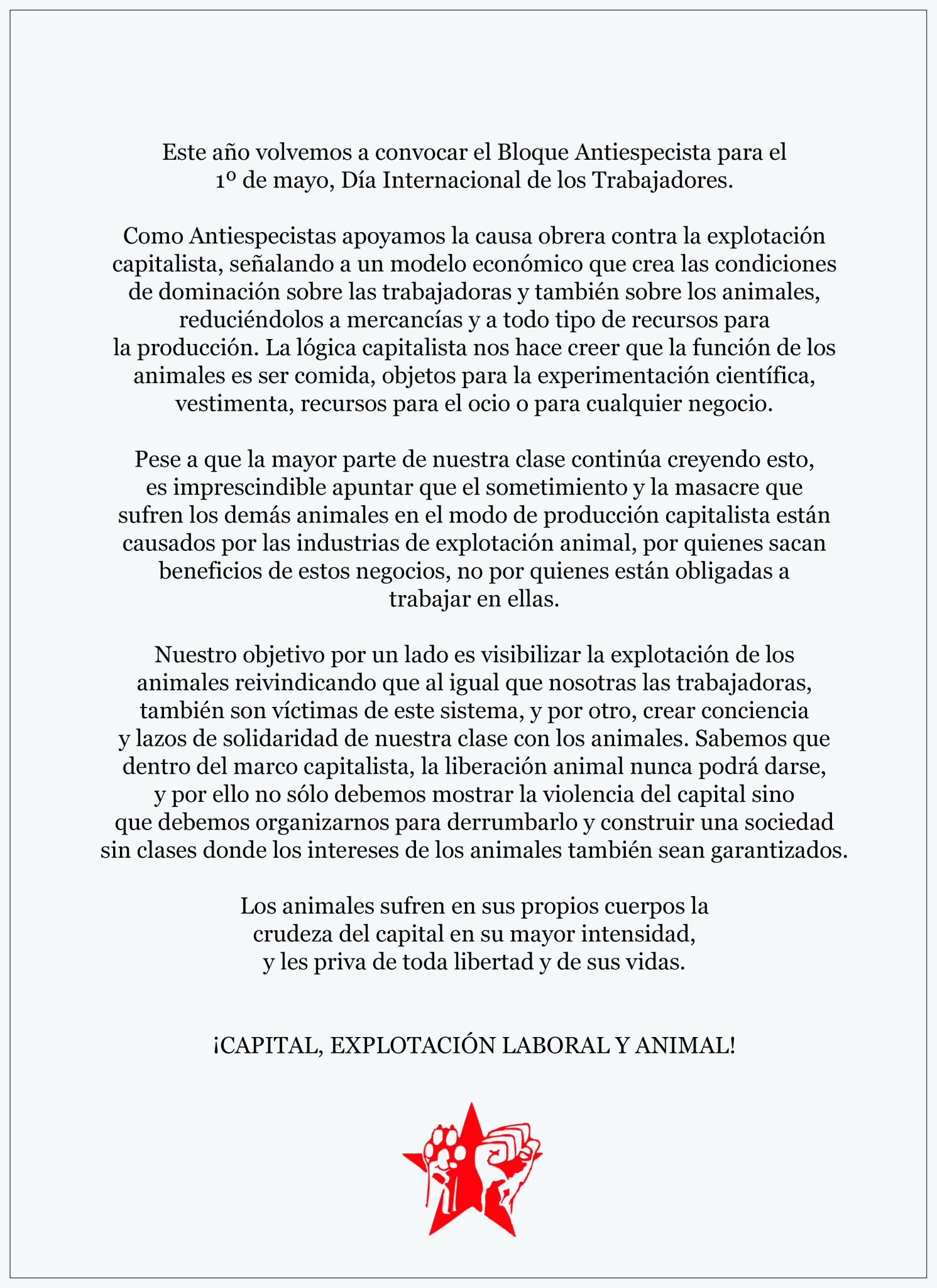 Desde PRAVDA-MTV afirmamos si el Estado liberal Español, y los partidos políticos, no se preocupa por los obreros y sus familias, menos lo va a hacer para dejar de ser la vergüenza de uno de los poco países de EU que aún permite animales en los circos.